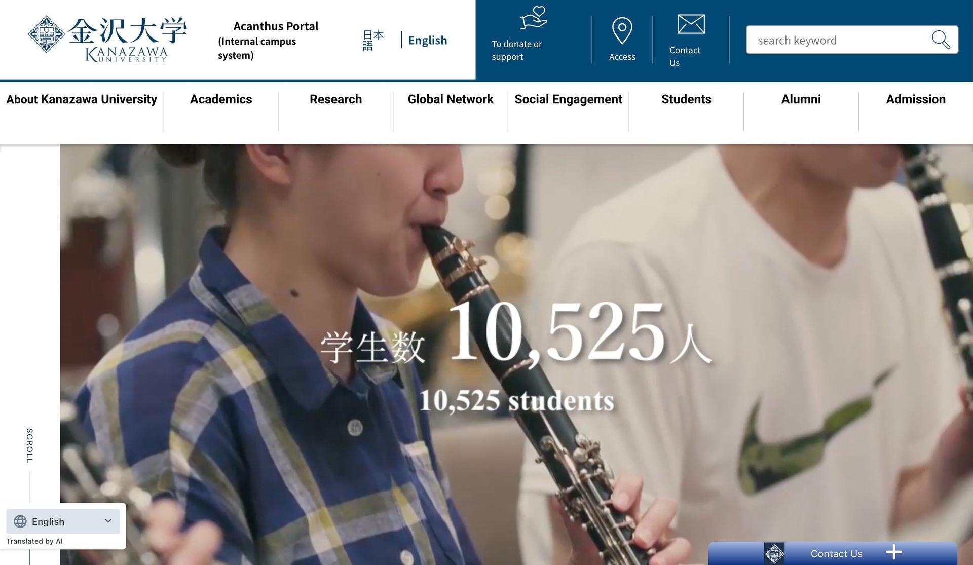 Kanazawa University's website serves students and faculty with academic resources and information about campus life.